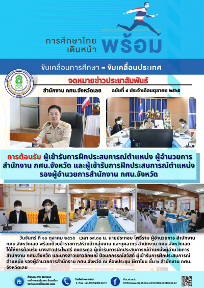 การต้อนรับ ผู้เข้ารับการฝึกประสบการณ์ตำแหน่ง ผู้อำนวยการสำนักงาน กศน.จังหวัด และผู้เข้ารับการฝึกประสบการณ์ตำแหน่ง รองผู้อำนวยการสำนักงาน กศน.จังหวัด