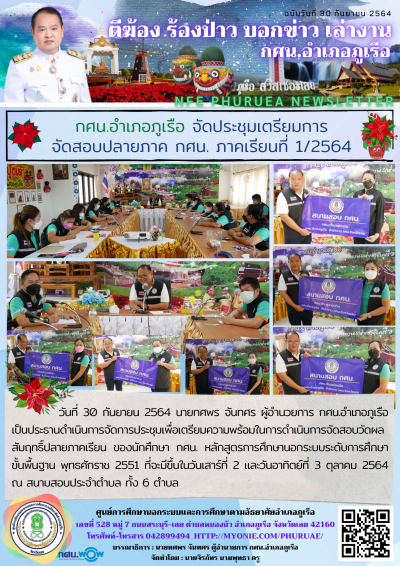 กศน.อำเภอภูเรือ จัดประชุมเตรียมการ จัดสอบปลายภาค กศน. ภาคเรียนที่ 1/2564