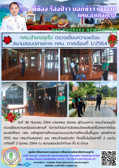 กศน.อำเภอภูเรือ ตรวจความพร้อม สนามสอบปลายภาค 1/2564