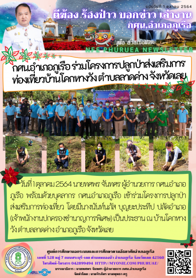 กศน.อำเภอภูเรือ ร่วมโครงการปลูกป่าส่งเสริมการท่องเที่ยวบ้านโคกหางวัง ตำบลลาดค่าง จังหวัดเลย