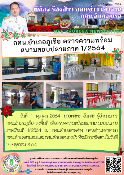 กศน.อำเภอภูเรือ ตรวจเยี่ยมความพร้อม สนามสอบปลายภาค กศน. ภาคเรียนที่ 1/2564