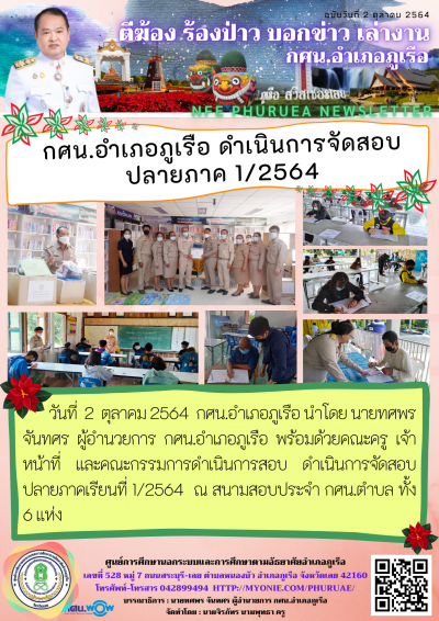 กศน.อำเภอภูเรือ ดำเนินการจัดสอบปลายภาค 1/2564