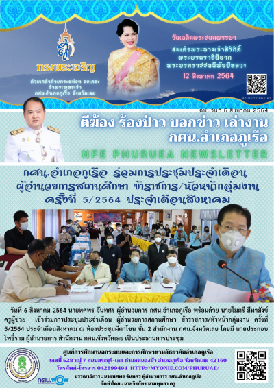 กศน.อำเภอภูเรือ เข้าร่วมการประชุมประจำเดือน ผู้อำนวยการสถานศึกษา ข้าราชการ/หัวหน้ากลุ่มงาน ครั้งที่ 5/2564 ประจำเดือนสิงหาคม