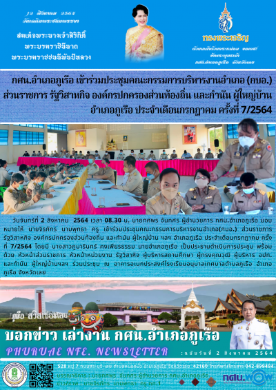 กศน.อำเภอภูเรือ เข้าร่วมประชุมคณะกรรมการบริหารงานอำเภอ (กบอ.) ส่วนราชการ รัฐวิสาหกิจ องค์กรปกครองส่วนท้องถิ่น และกำนัน ผู้ใหญ่บ้าน อำเภอภูเรือ ประจำเดือนกรกฎาคม ครั้งที่ 7/2564