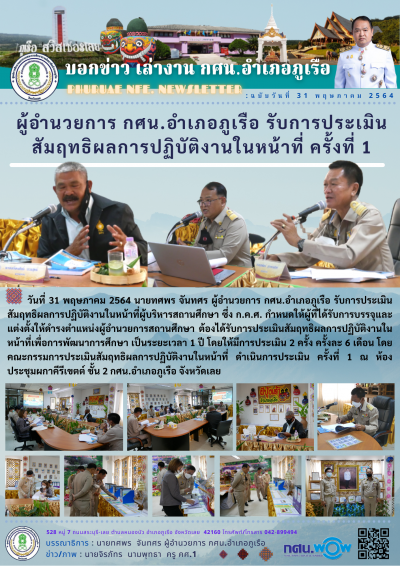 หัวข้อข่าว : ผู้อำนวยการ กศน.อำเภอภูเรือ รับการประเมินสัมฤทธิผลการปฏิบัติงานในหน้าที่ ครั้งที่ 1