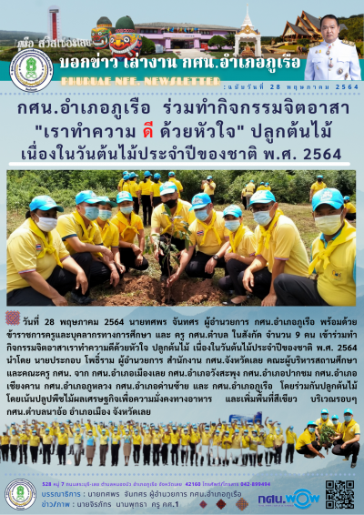 กศน.อำเภอภูเรือ ร่วมทำกิจกรรมจิตอาสา "เราทำความ ดี ด้วยหัวใจ" ปลูกต้นไม้ เนื่องในวันต้นไม้ประจำปีของชาติ พ.ศ. 2564